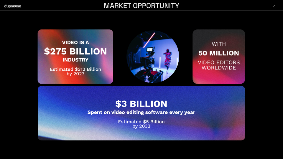 Clearly quantifying everything, including market opportunity (shown above), problem, solution, and more translates to business sense for investors.